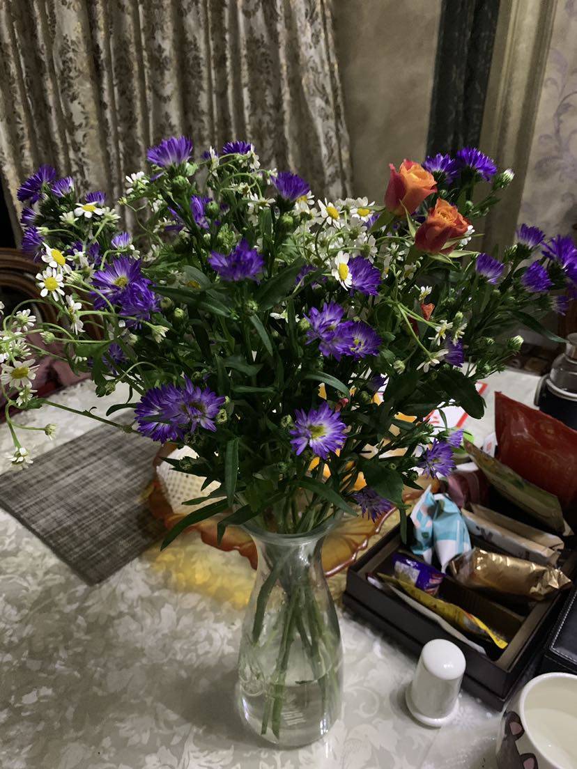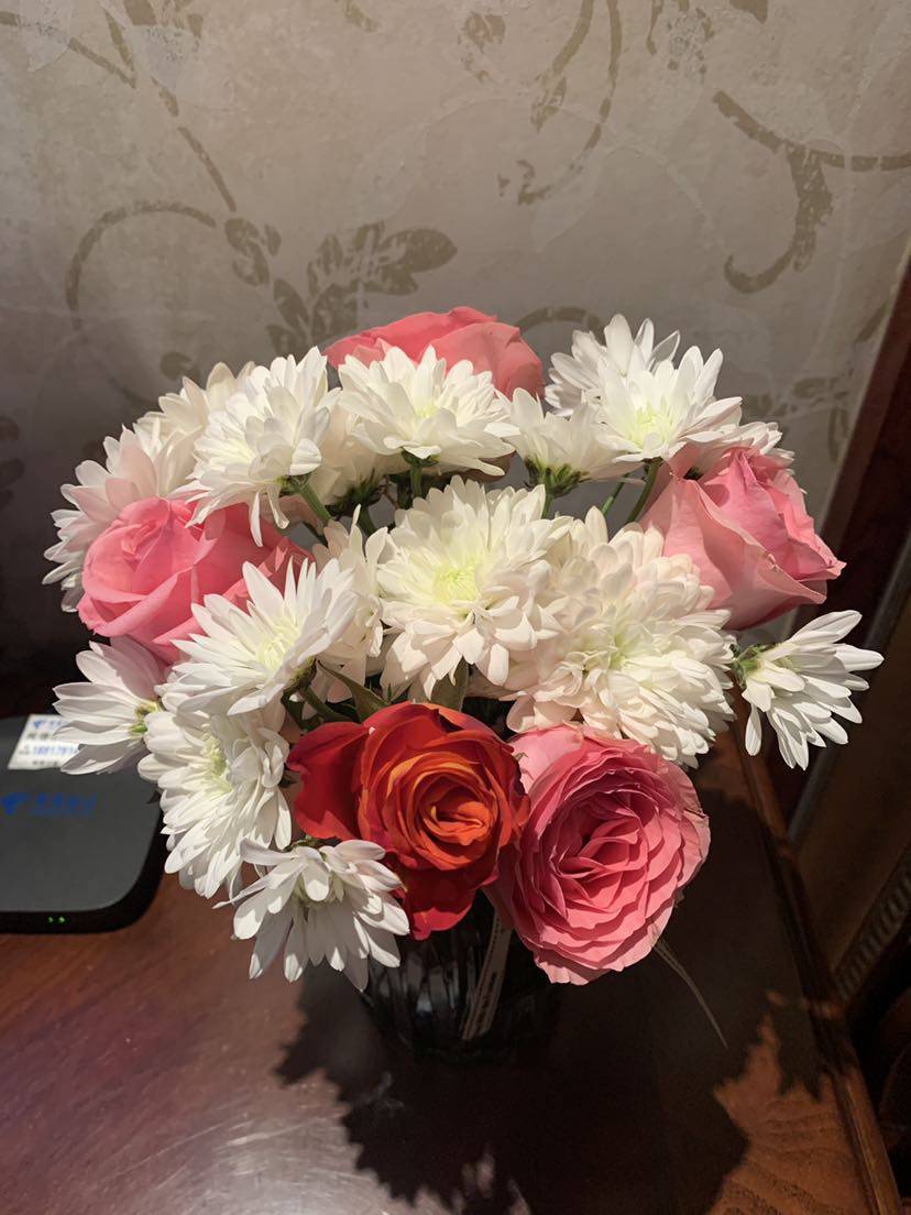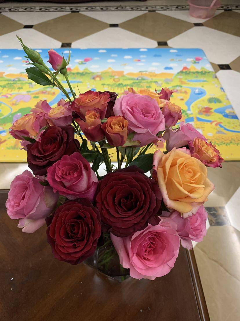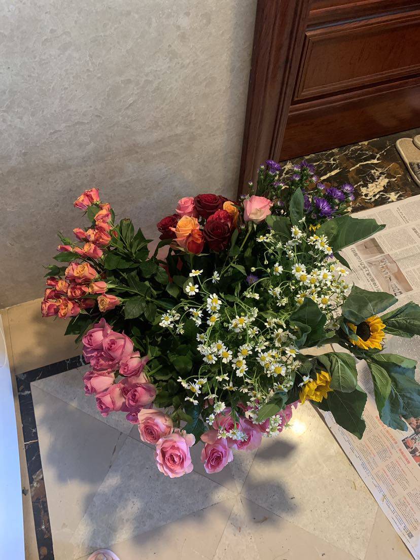 加上运费只需49.5的鲜花盲盒开箱了。一共七束花材,玫瑰为主。玫瑰有蜜桃雪山、杂色玫瑰、粉枚、真爱玫瑰和多头泡泡,还有迷你向日葵、洋甘菊、紫色的配花。上图啦!