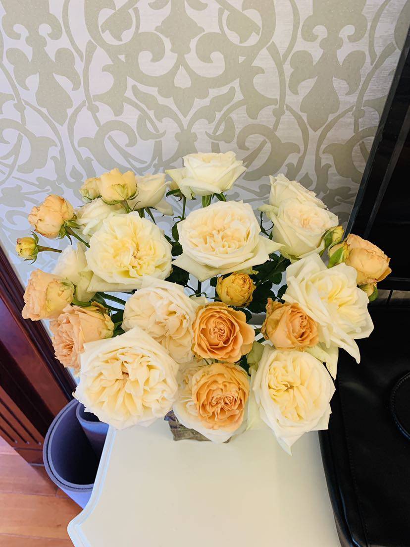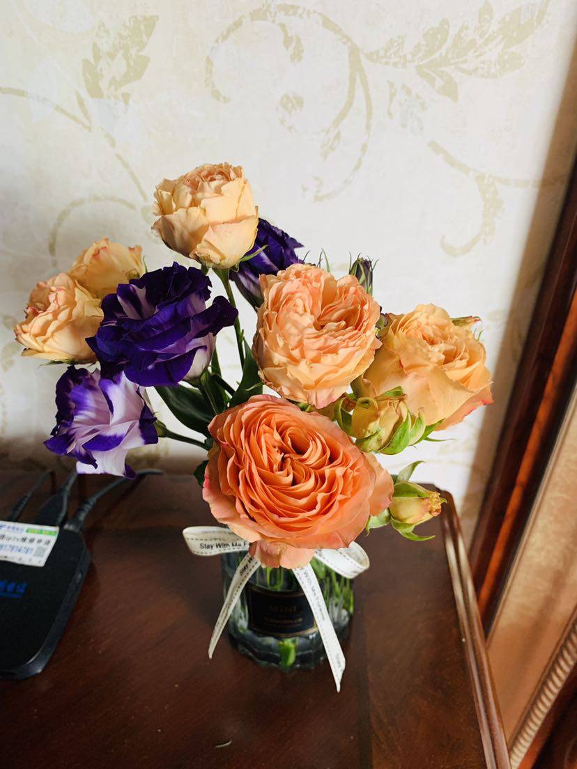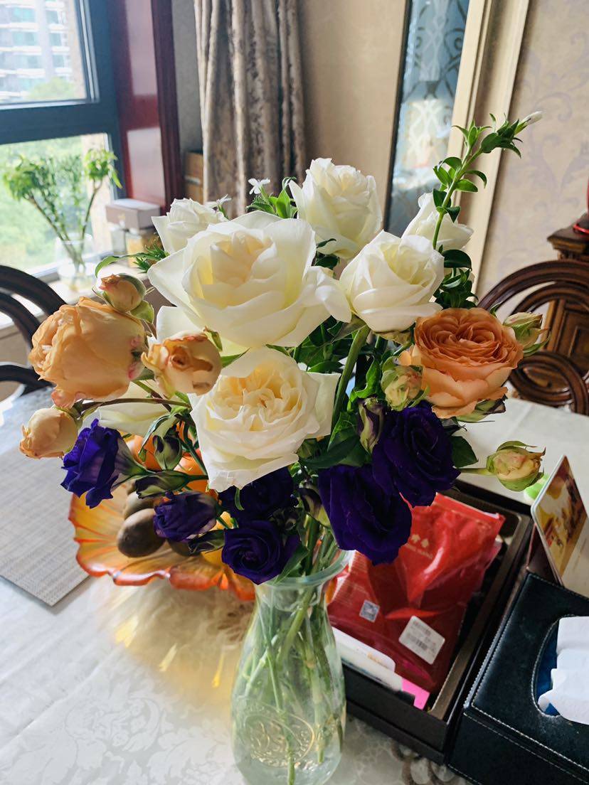 鲜花最近价格涨了不少,一束白荔枝,一束杏色蕾丝,配上紫色桔梗和迷你向日葵要75了。估计春节前的鲜花价格要更高了。上图😀
