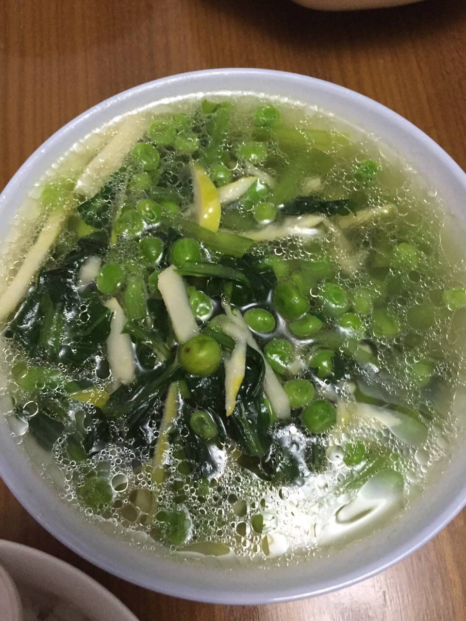 中饭是小甜豆青菜竹笋汤,还有一盘龙虾,不健康 就不给你们看了