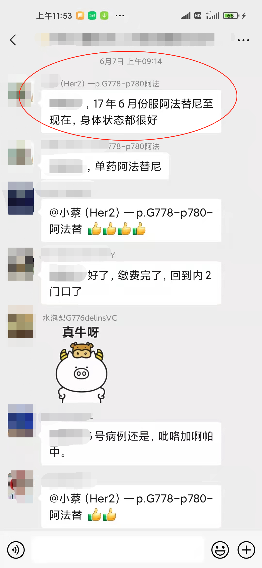 下面分享张力教授所提到的2个靶点阿法目前吃最长的2个人 均超过4年