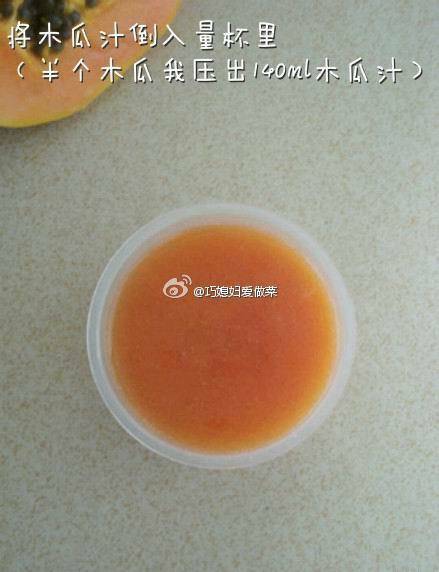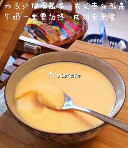 我自己打木瓜牛奶的时候,下多了木瓜就变这样,可我觉得不好吃啊!根本不是想象中果冻的口感,就是看起来能结成块的糊。