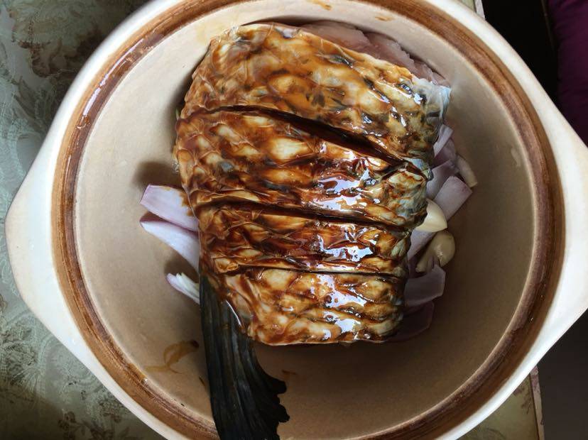 今天做个自己吃的主打菜,砂锅焗鱼,简单省事,美味可口,做法很简单,提前把鱼用调料腌制10分钟入个味,砂锅底部放入洋葱、姜片、蒜头、芹菜,最后把鱼放上,腌制的调料一起倒入砂锅中,不放水文火炖煮20分钟,(根据鱼的大小,数量来定,是不是很简单。