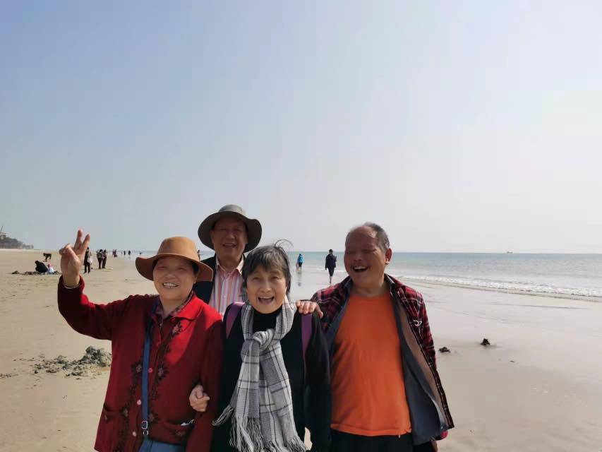 两个妈都不吃海鲜,两个爸吃得很满意。吃完后打车去银滩。我爸还是第一次看到大海,老人们都很高兴。我这个领队真有点累,到处都要行程卡和健康码,这个人均年龄75的老年团,一个一个教了也不会,必须得一个一个帮他们弄,对我真是考验。