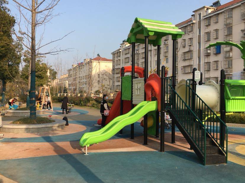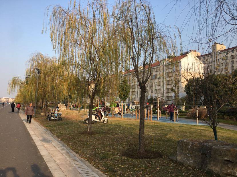 绿道旁安放了一些锻练身体的体育器材,还有小朋友的滑滑梯,荡秋千