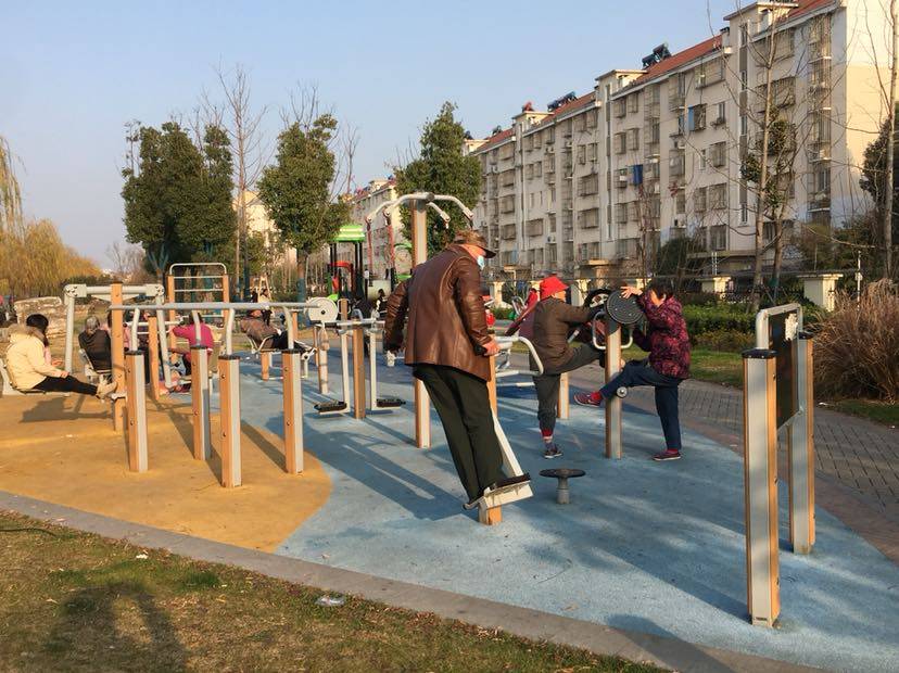 ,真是老少皆宜,还有重量级可调节的健身器材,这些都是党和政府为民办的好事,全民健身。