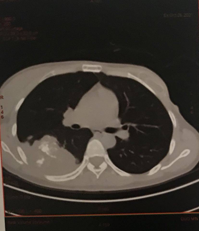 化疗两期无效后,12月10日肿瘤长的很大了,粘连胸壁也更多了