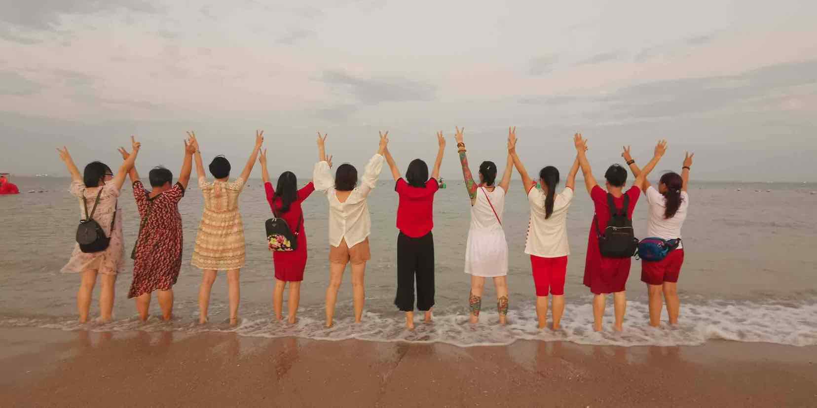 这张照片是我们十姐妹在海边的留影(看看背影、姐妹们能猜对都是谁😂)