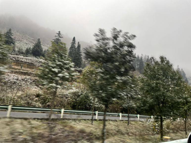 毕节和北海真是冷热两重天,昨晚停车的时候我就看到车灯晃出一点点小雪的样子,今早也有小雨,原想搜一个景点参观,太冷了哪儿也不去了直接打道回府。在高速路上看到山头上铺了一层薄薄的雪花,前天在北海30度,今天车外温度0度,冰雪路面,小心驾驶,安全第一。