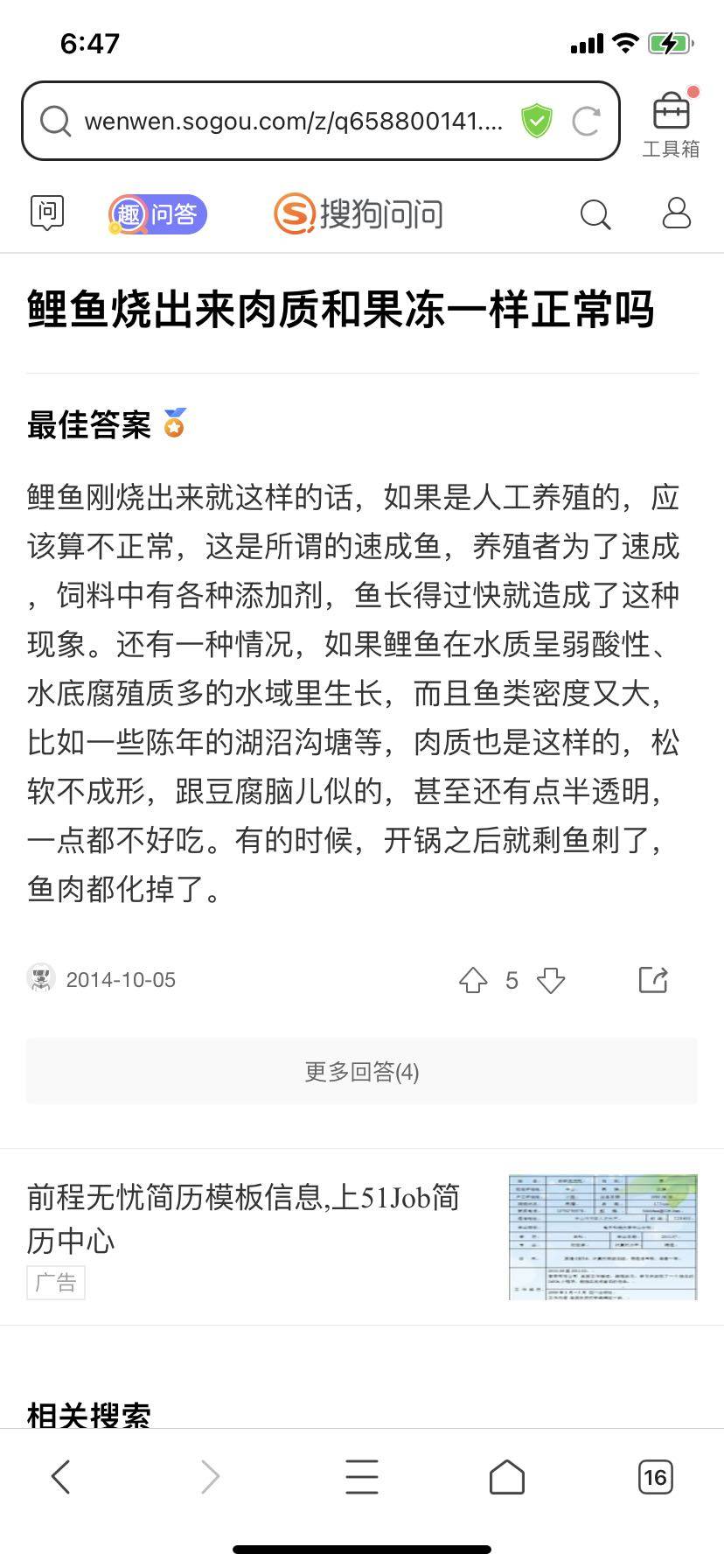 今天老公炖了一天鲤鱼,煮出来肉质和果冻一样,一开始以为没熟,叫老公再去煮,结果还是这样,我就不敢吃了。我老公本着不浪费的原则一个人吃掉了。我过了一会百度了一下,果然不是好鱼。还是我老公在他同事那买的,他同事在鱼市场批发的。