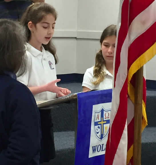 一个女孩向她的同学们说着她的观点,凯拉Meikus,一个9岁的学生,在伯明翰,阿拉巴马州,悲伤的天主教学校读书,在她4岁的时候被诊断为自闭症。
