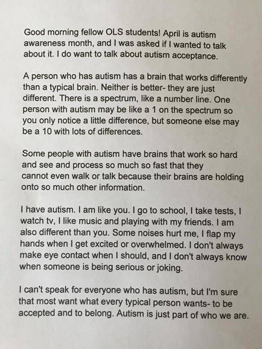 链接:http://www.huffingtonpost.com/entry/girl-with-autism-delivers-powerful-speech-about-condition-over-announcements_us_5714f30de4b06f35cb7005d1