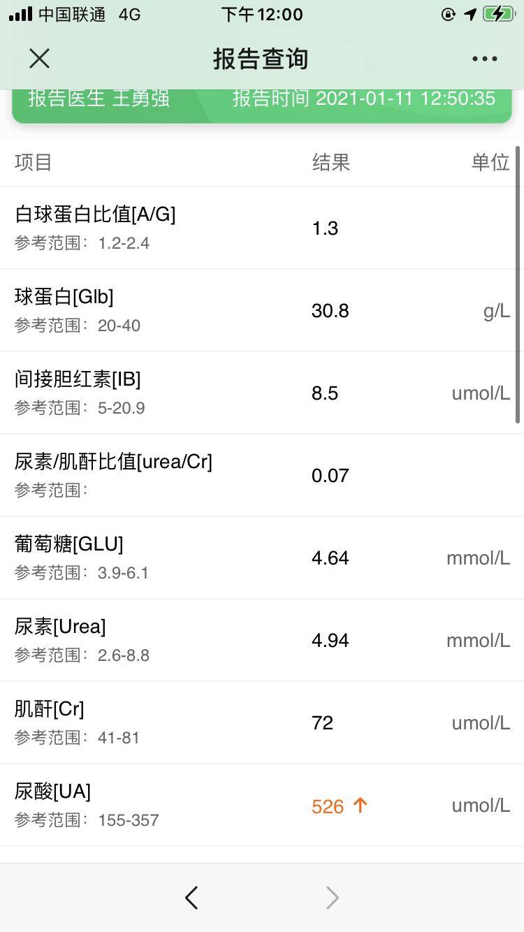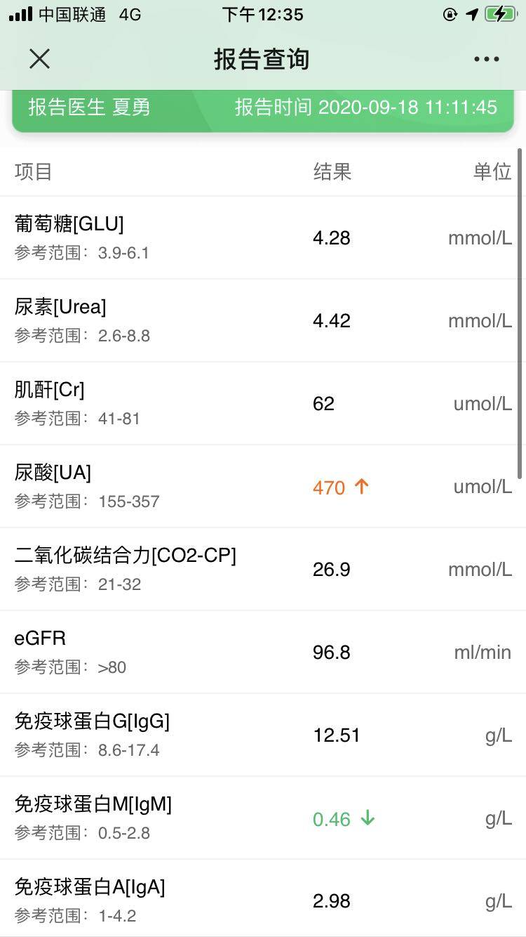 查看之前的结果尿酸一直高!!!其他的有些高的也不明白……