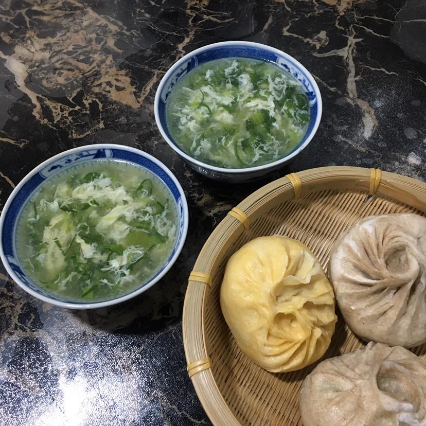 黄瓜鸡蛋汤和杂面包子