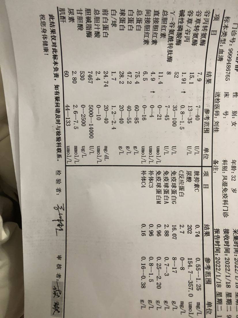 宝子们,好久没来觅健了,刚刚刷了一个小时的圈,看着大家各自的情况,每个人都在以不同的心态和方式生活着,棒棒哒👍! 2022年了,发个小贴,纪念一下😊!2019年烧伤感染➕药物中毒,直接弄成了狼疮肾炎四型,感恩遇到好大夫,吗替精准到位,当初半年尿蛋白就转阴了。激素从 '10粒,用了差不多九个月的时间吧减到1粒,然后就一直维持到现在,估计是不能再减了😂!手里的慢性病本本,一直提醒自己三个月一次复检,每次单子都是正常值,自己也会偷懒了,这不,上一次检查还是2021年7月份,马上年底了,距离上次复检已经时隔半年多了,三天前,我去复查,讲真哈站在打印化验单机器的前方,心里还是会