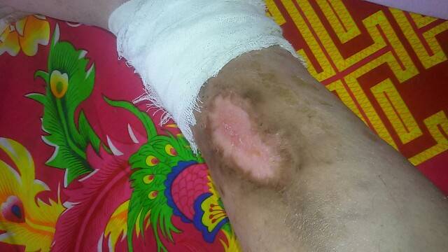 你这个叫老烂腿,也叫下肢静脉溃疡,是下肢静脉曲张和糖尿病最常见的并发症,那个位置的伤非常难好,要不看看中医敷些药膏,实在不行打消炎针(这个对我们的病不利)要有战狼的耐心打持久战,就算好了也要千万小心不要碰到。