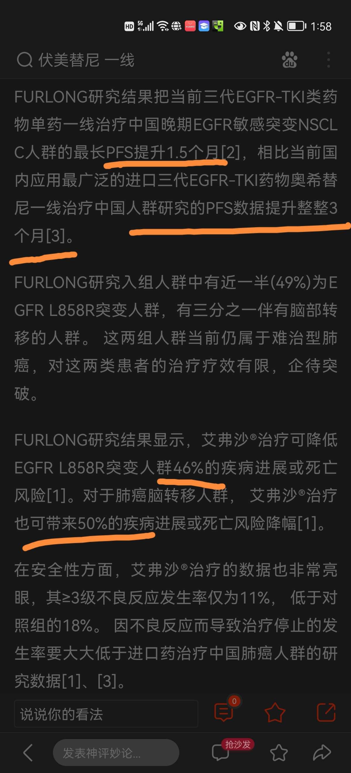 奥西中国人群的PFS比伏美少3个月,一线治疗不管是脑转移控制还是L858R还是19各方面数据都不如伏美。