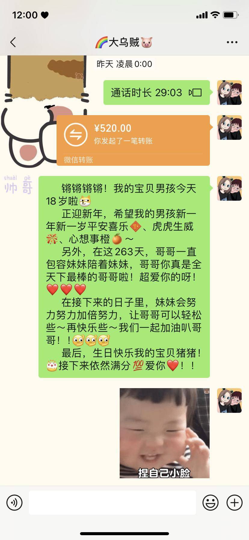 昨晚卡点给男朋友送生日祝福12点才睡。
