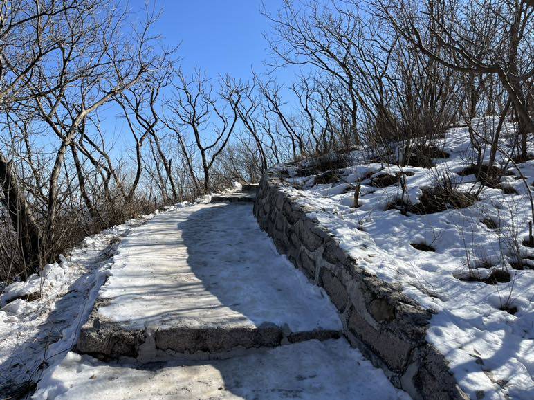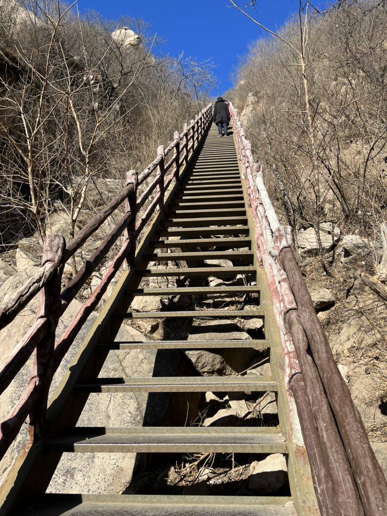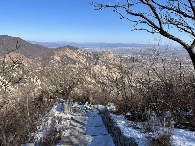 今天正月初五,早上和先生说想去八大处爬山,结果百度上查八大处初五闭园,于是决定去爬凤凰岭,早上8点从家出门,驾车近1小时到达凤凰岭,选择了凤凰岭的中线上山,山路比较陡,先生让我慢慢走,累了就歇一歇,说人生也象登山一样,一步一步走,总会到达目标。爬上了云梯,登上观景平台,看着北京城也显得非常渺小了。凤凰岭太大了,山上风大比较寒冷,积雪还没有融化,于是我们选择从南天门十八盘下山,下山路台阶比较平缓,走得轻松许多,到山脚已经下午2点了。