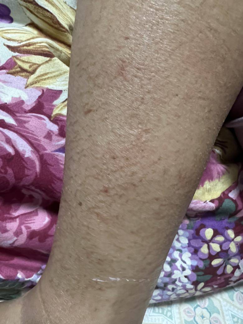 易瑞沙的副作用,可能要上皮诊,涂抹炉甘石洗剂先把痒止住,不要用手挠