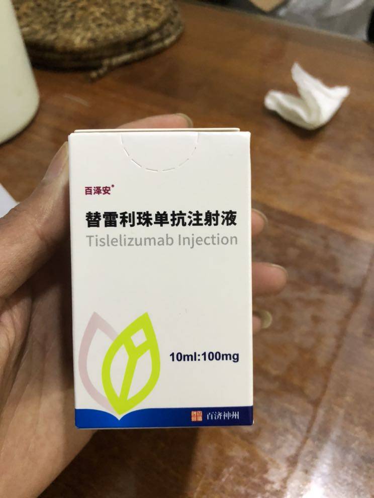 正月初七,杭州疫情严重,复查不便,只能去自己市级医院,从之前就诊过的医生了解到替雷利珠单抗可以报销,200mg只需要930元,我们去了医院挂好号,医生爽快的给开了药,再去医院门诊药房买好药,直接医保报销后930元,加上输液费60元,共990元,不到一小时就挂好走人!希望能继续维持,不要出现讨厌的副作用!