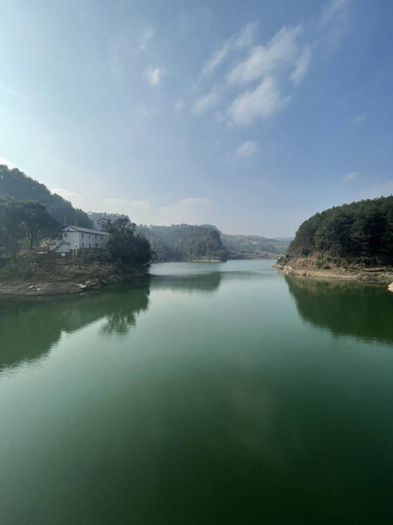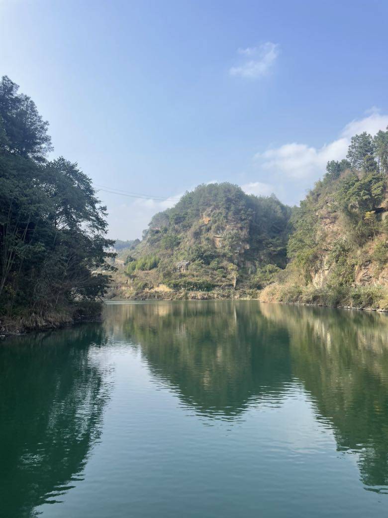 周日又是我们的郊游时间,原计划去看樱桃花,去年大年初一就已繁花盛开,今年正月十三了还是花苞,只能另择线路。走到一个水库,又是别样的风光。水库群山环绕,座座青峰,丛丛松柏倒影在库中,天更蓝了,水更绿了,家乡越来越值得眷恋。