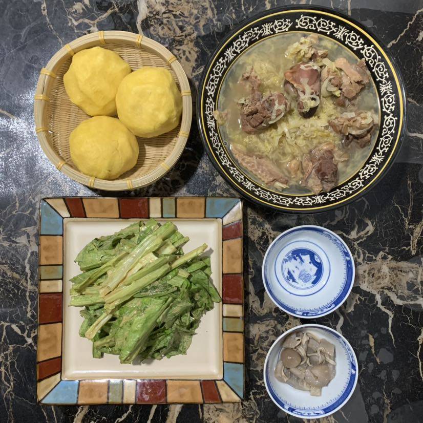 我是女王,吃海参😄老王没这待遇。在来几个自己做的玉米面窝窝头。豪横的早餐👍