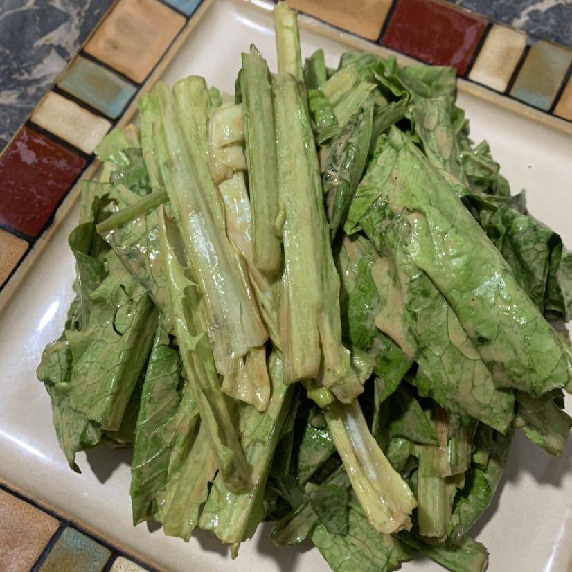 在来一盘麻酱油麦菜,麻酱用温水调好,放点海鲜酱油和少许醋和盐,拌匀即可。