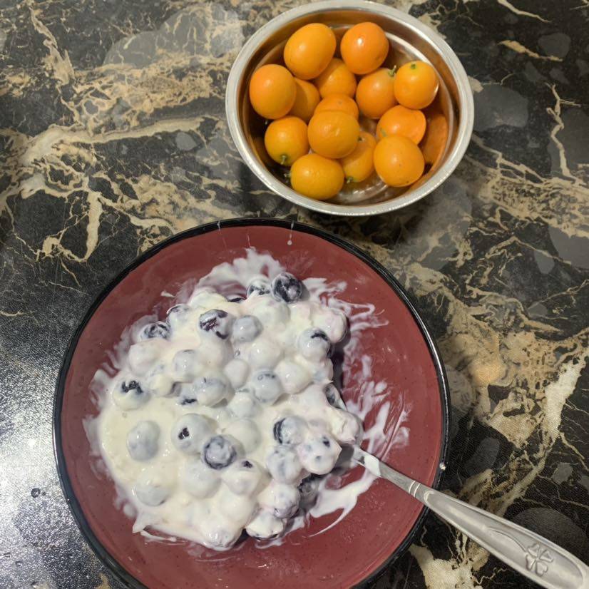 酸奶自己做,用脱脂牛奶做的。我当季囤了几十斤蓝莓,放冰箱冷冻。吃了这么久,还有一大兜子。现在超市卖的蓝莓好贵啊,我有一种投资升值感觉,哈哈😄冬季应季水果少,蓝莓可以弥补我的营养需求。