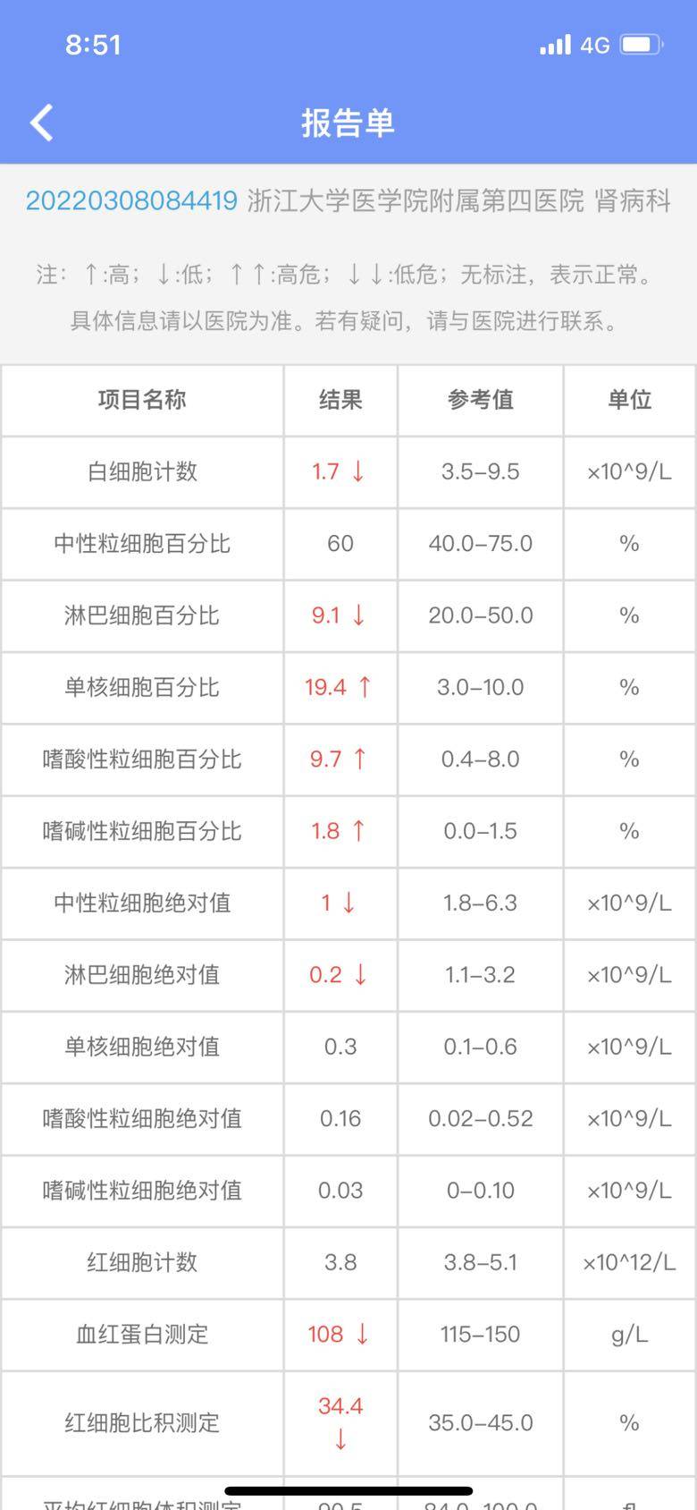 其实在2月7号,打第14次的时候白细胞就开始下降1.9,打了升白接着打贝,然后回家10天后白细胞0.91,自己加了地榆升白配利可君,一个礼拜后1.7,10天后也就是3月7号住院查出来还是1.7没变化!