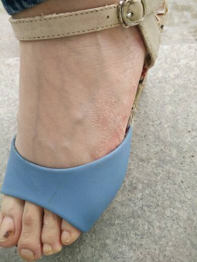 真菌感染,又称湿疹。穿凉鞋几天就好了