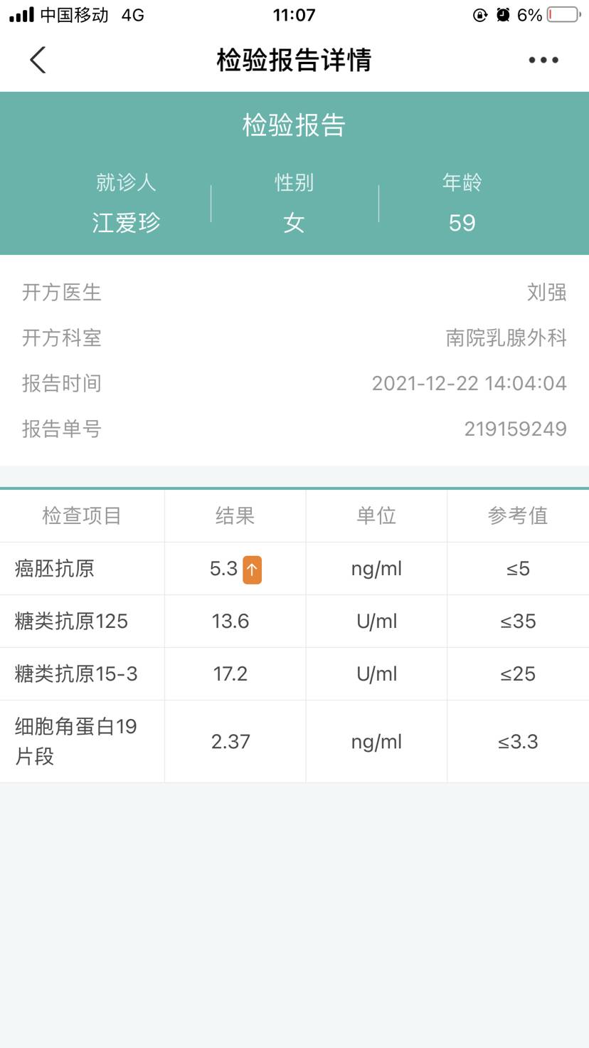 直率的煎饼1834请问你cea多少啊 今天去复查也是治疗完半年 是11.09
