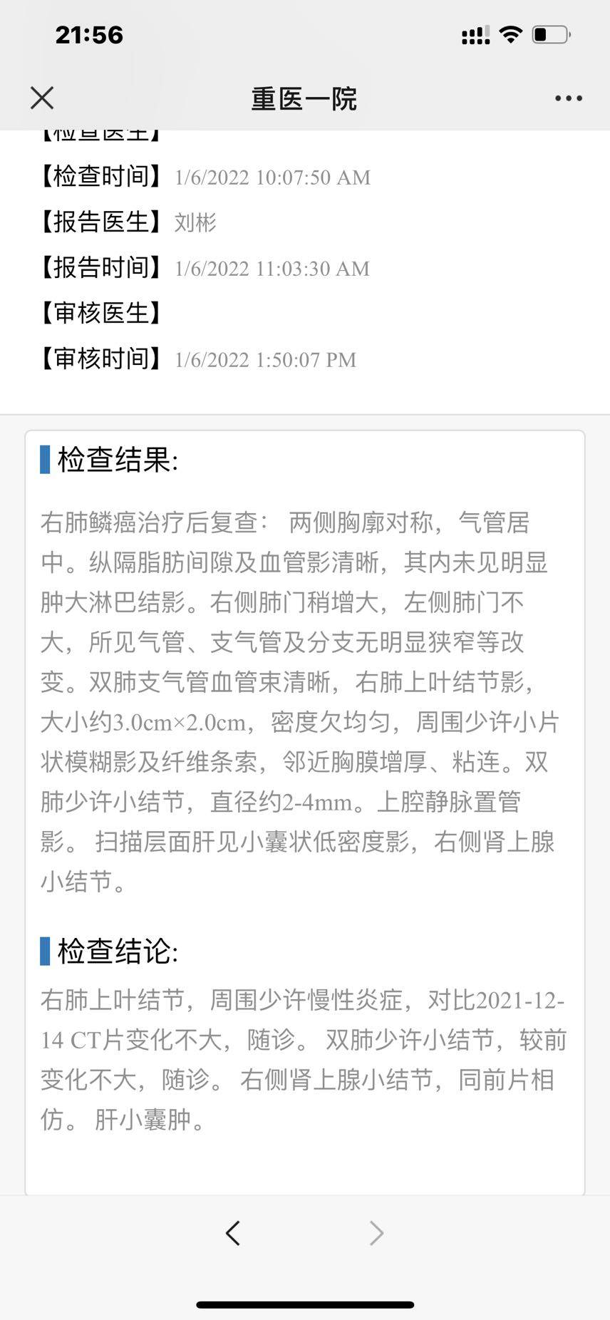 6、21年12月15就骨头痛有点咳嗽,医生说放疗咳嗽正常检查后(附图1),继续放疗到27号,1月初咳嗽加重,1月9号CT检查也说不是放射性肺炎(附图2)第11次单k,持续咳嗽