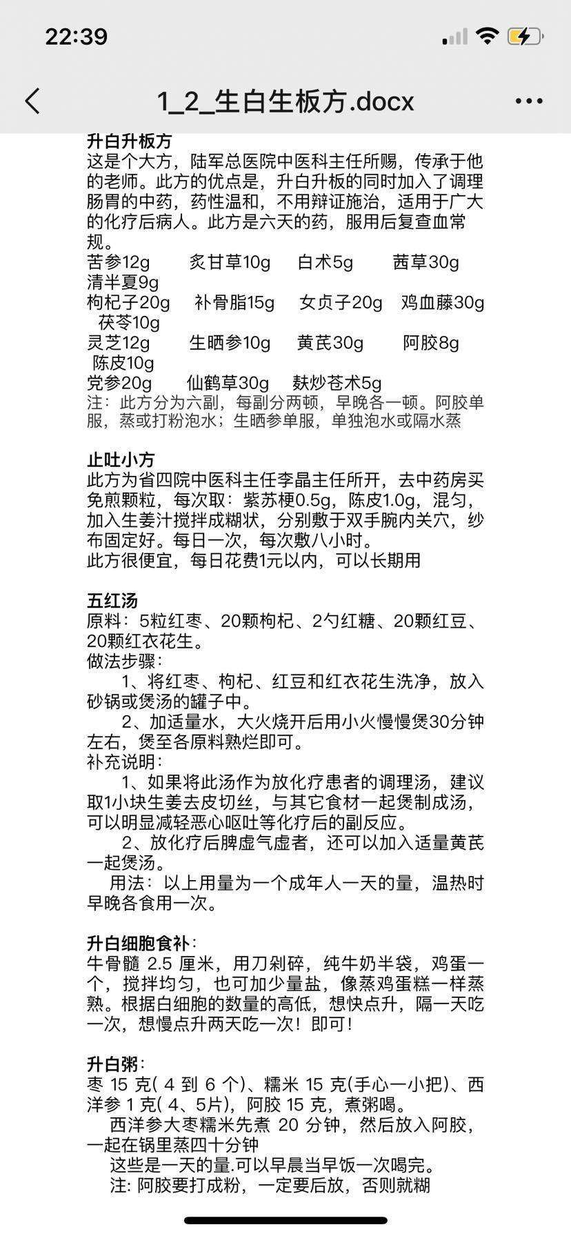 今天早上测了血常规,结果白细胞和中性粒细胞断崖式下跌,还是轻视了卡铂的骨髓抑制作用,在和主治医生沟通后立即前往医院打短效升白针,需要连续打三天。目前已注射完第一针,好在没有疼痛等副作用,希望后面能一切顺利。蚕蛹,牛骨髓,鲫鱼汤吃起来!大家有什么好的升白方法也请多多赐教。