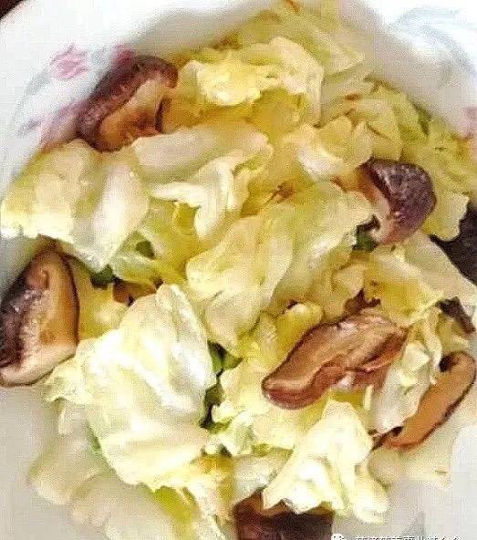 热油锅后,爆香姜丝,放香菇翻炒片刻,倒一些泡香菇水进去,把香菇煮透并收汁(注意不要把香菇煮焦)后,倒入圆白菜,再加少许泡香菇的水;放少许生抽、盐翻炒入味出锅即可。
