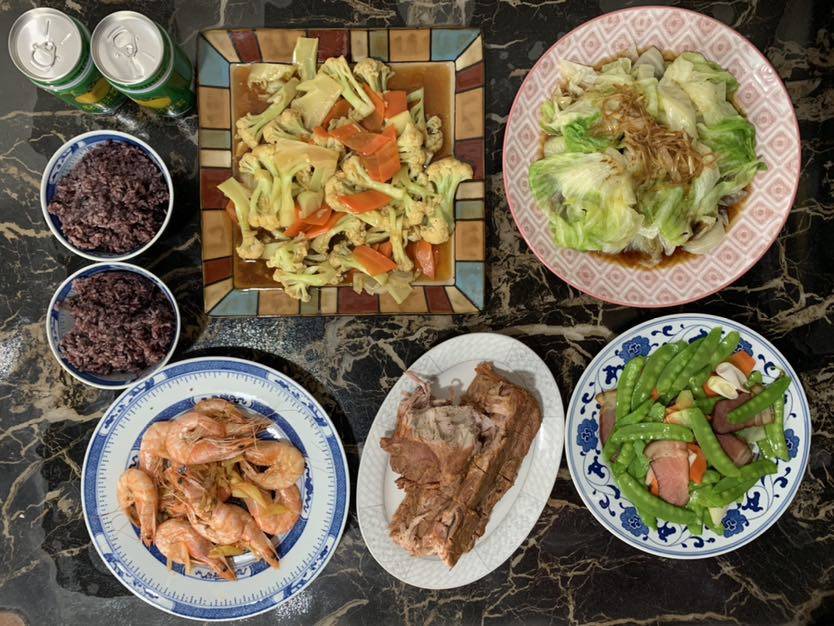 我的午饭,烤鱼,清炒木耳菜,蒸槐花,杂粮饭。