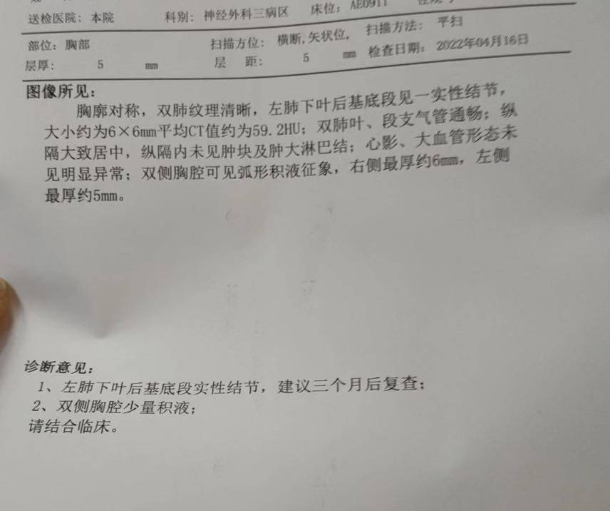 妈妈自从打了四价之后就浑身哪哪都不舒服,老是头疼没力气都以为是打四价打得,检查也没查出来什么,最后拿了脑部ct发现里面有30*40mm的阴影,还挺大的,然后4.15号转三甲院做磁共振去进一步检查,到了汕头市医学院第二附属院,要预约本来说17号做又什么预约不上推到了20号才能做磁共振,中间又检查肺部有结节并伴有积液,天天住院输液也做不了磁共振的这几天太难熬了,问外地的朋友哥哥说最坏结果可能考虑是肺癌转脑,惊天霹雳,妈妈一直没生过啥大病就是抵抗力差点,突然有患癌的风险,虽然还没做磁共振进一步检查,但这几天忧心忡忡,太煎熬了,看片子这种几率大吗?