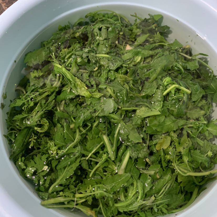 昨天我去天津复查,老王在买的荠菜在单位都收拾好,焯水冷冻保存啦。