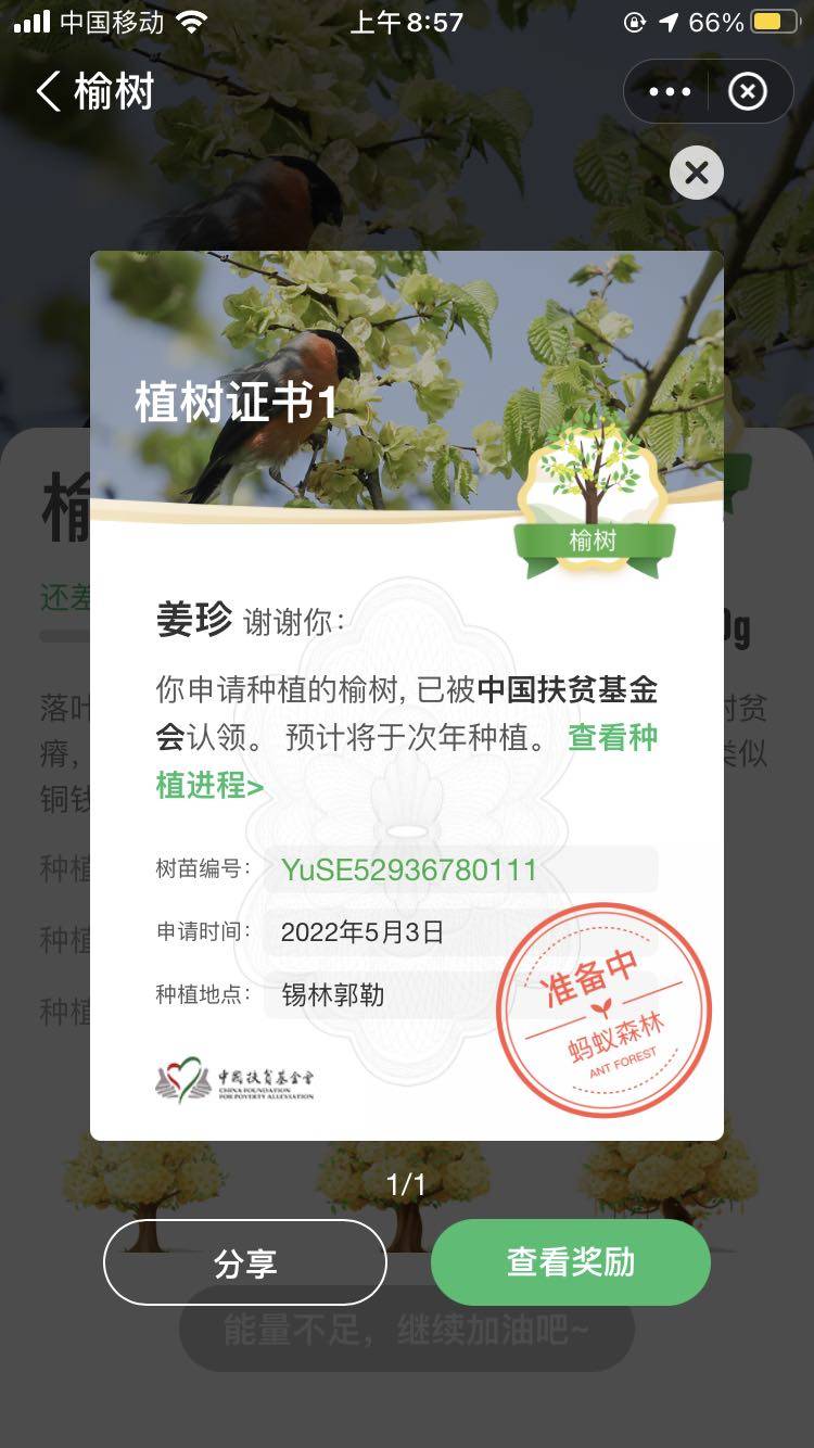 一直想种的榆树,终于攒够能量种植成功✌️✌️