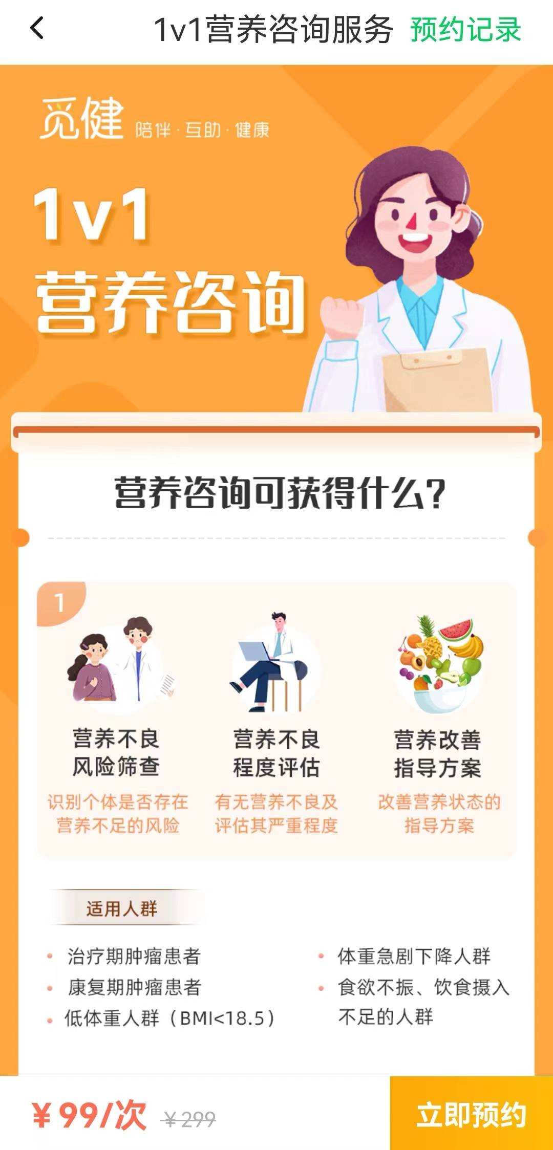 五月份开始,营养师一对一咨询上架【觅健APP问专家】服务啦!每次咨询中,可以和营养师“唠嗑”50分钟,营养师会根据你的需求,对你进行综合性营养评估、解答、具体指导、及按时随访和陪伴。
