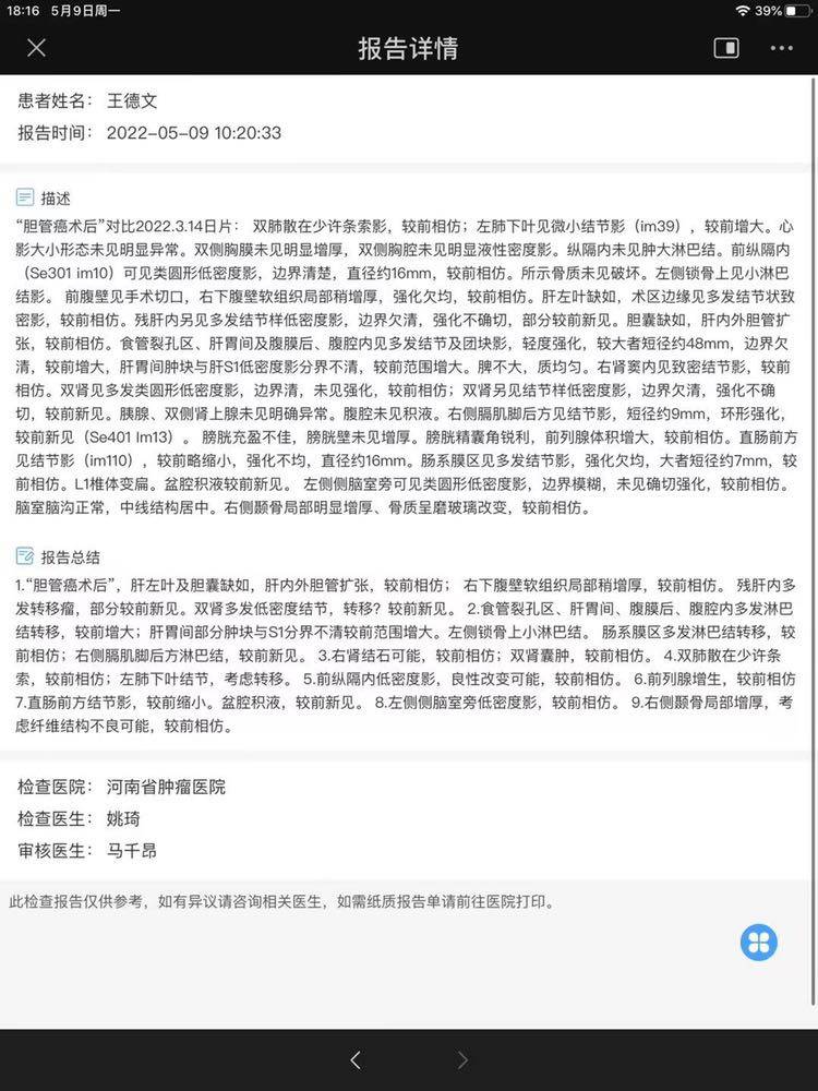 我母亲刚刚做了胆管癌手术一个多月,吉西他滨➕卡培他滨治疗一周期,请问你做了三个周期之后换方案是因为复发了吗