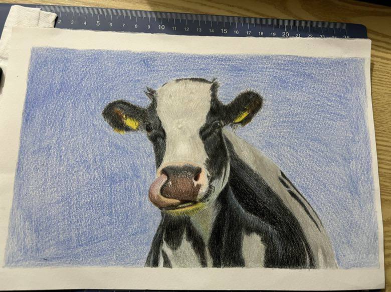 周末画了只奶牛!画画的过程好治愈,啥都忘记了!