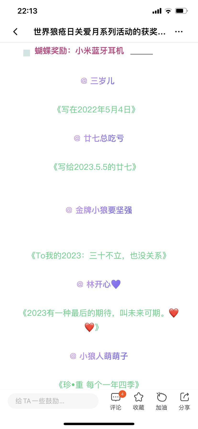 也得知自己的帖子中了奖