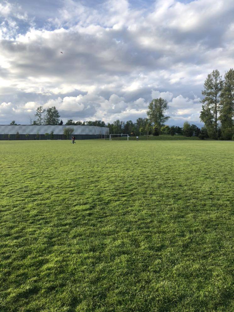 图二:小学的操场很绿很美