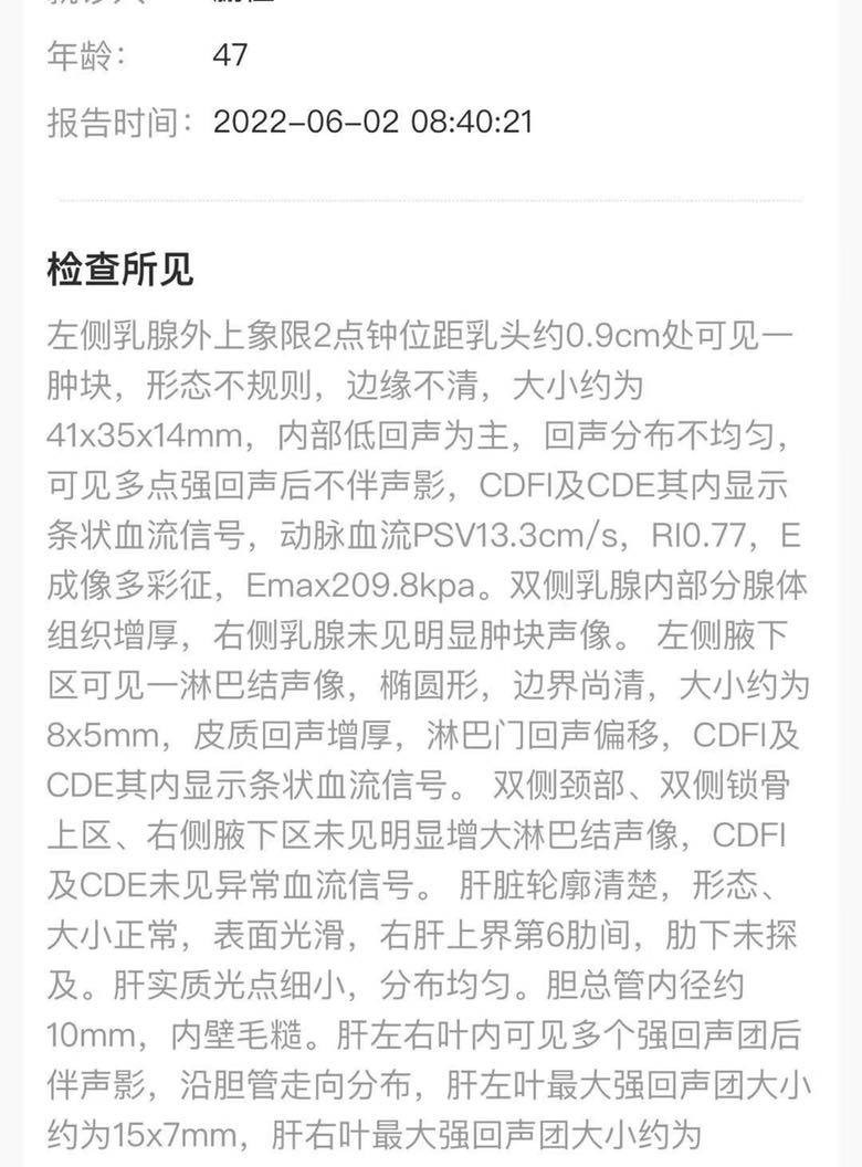 我妈妈8次治疗后 检察核磁共振显示大小难以测量 可b超结果显示还有4.1厘米 为什么相差那么大该怎么确认哪个对 第一张是核磁 后面两张是b超 现在不知道该不该手术了
