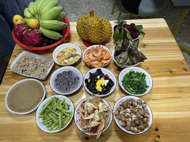 今早去菜市场晚了些,鱼啊,虾啊都卖完了,太佩服人们过节的购买率!只买到螺和肉蟹,还好昨天有包粽子,买了虾存放冰箱。