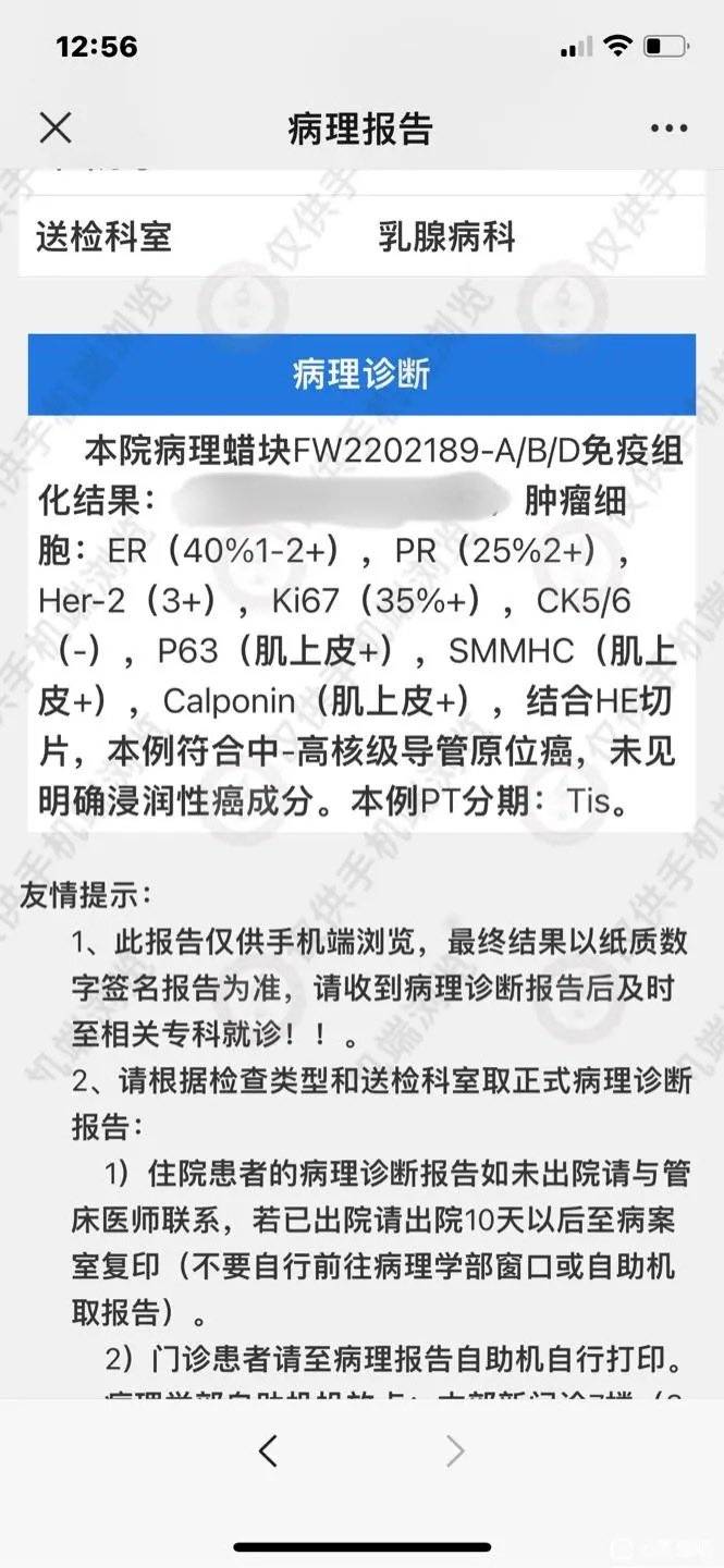 年龄43岁,中高级别导管原位癌未浸润,肿块距乳头1.4cm,肿块大小:2.2×0.8cm。免疫组化结果如下图,求助大神,这种情况是建议保乳还是全切?万分感谢!