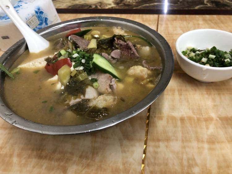 老板问我哪里人,吃的习惯不,我说湖南人还好,一大盆吃完了,哈哈