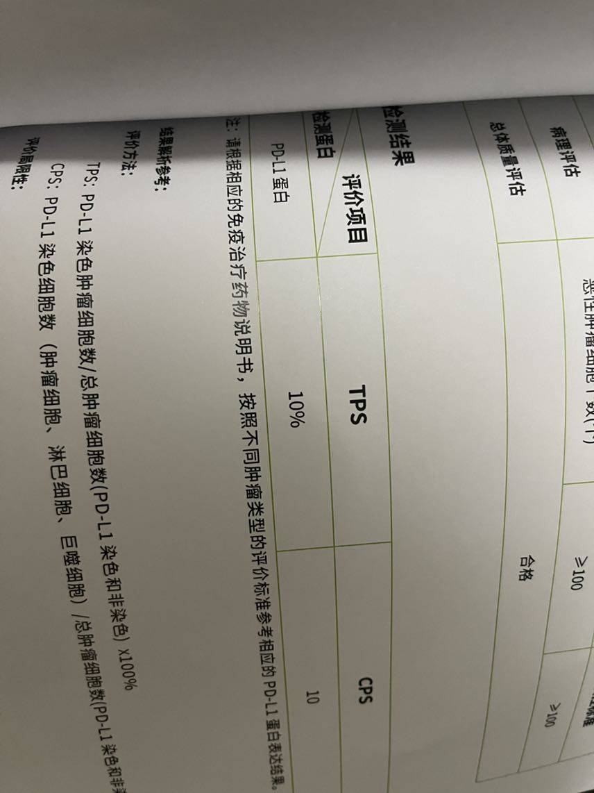 中央型,侵犯气管无法手术,肿瘤大约5cm ✖️4cm ,无呼吸困难。纵隔淋巴结肿大应该为转移。双肺散在小结节不确定是否为转移。无其他转移。目前状况偶尔咳嗽。体力好。免疫表达10%。组织基因检测及免疫结果见下图。