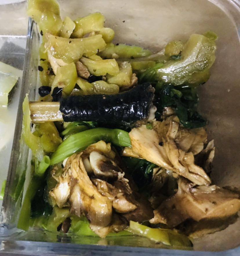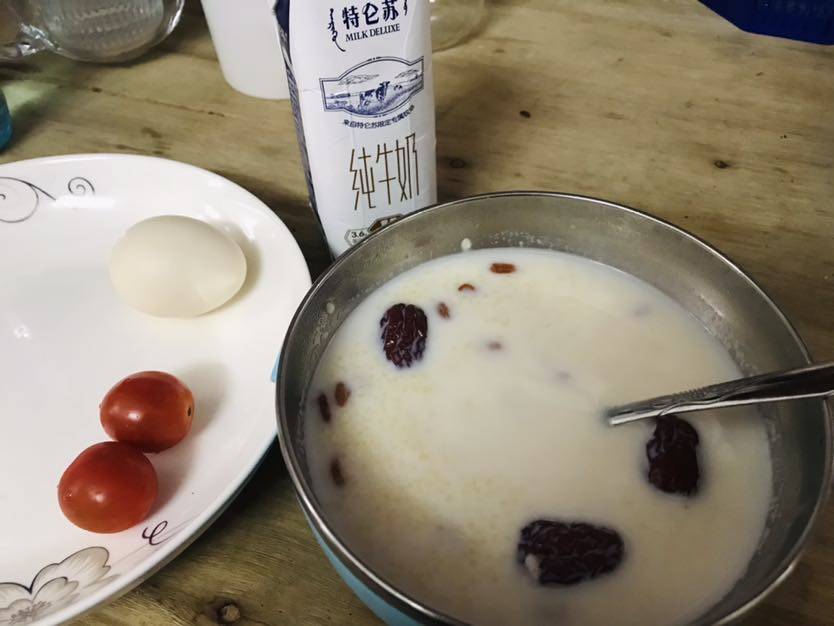 早餐晚餐。早餐自己煮的粥。晚餐饭堂打的菜,好少肉肉啊。