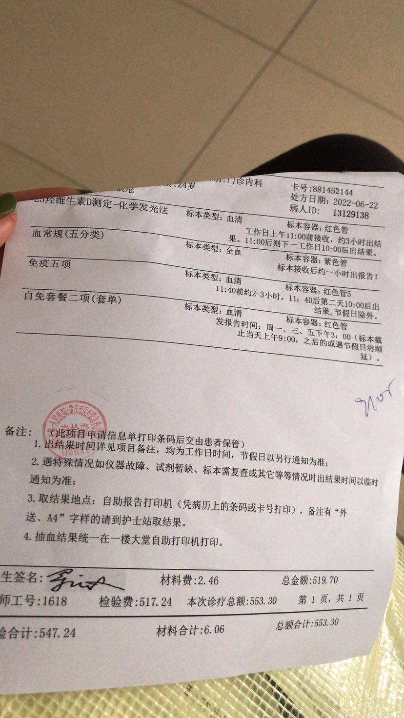 本来今天没打算去看医生的,然后昨天突然心血来潮要看妇科,然后就一起挂了号,看了两个医生。3月份我也是抽了血很今天指标都差不多,因为喝了中药又没吃免疫制剂,所以这次又再抽一次。